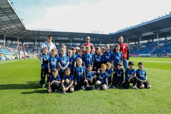 Bereits die späten Führungstreffer feierten die Spieler gemeinsam mit den kleinen Fans. Doch es wurde noch besser: Nach dem Spiel nahm das Team der ersten Mannschaft die Kinder kurzerhand in ihren Abschlusskreis ein, um die wichtigen drei Punkte auf dem Weg zum möglichen Aufstieg in die Landesliga gemeinsam zu feiern.